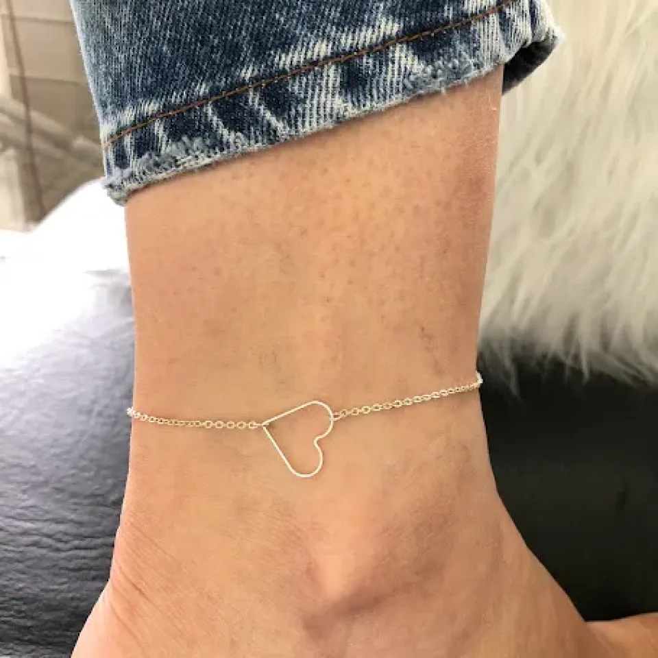 TORNOZELEIRA DOURADA COM MINI CORAÇÕES CHA...