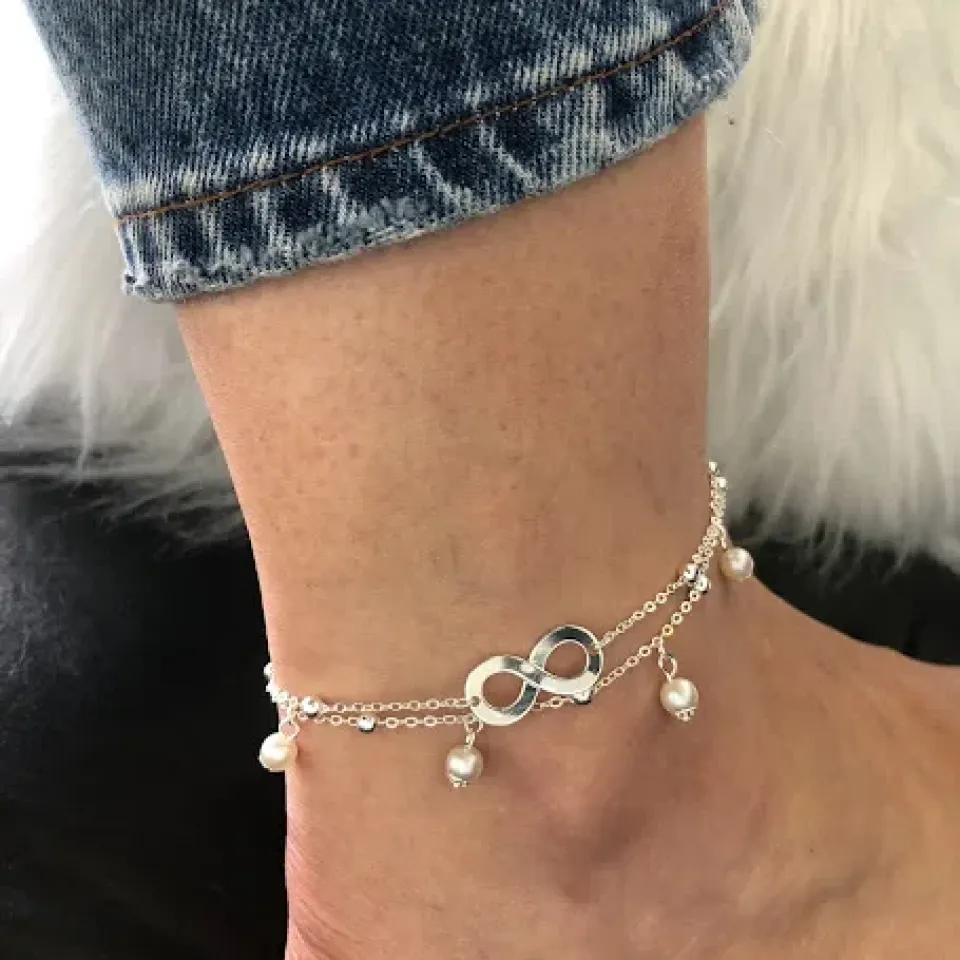 TORNOZELEIRA DOURADA COM MINI CORAÇÕES CHA...