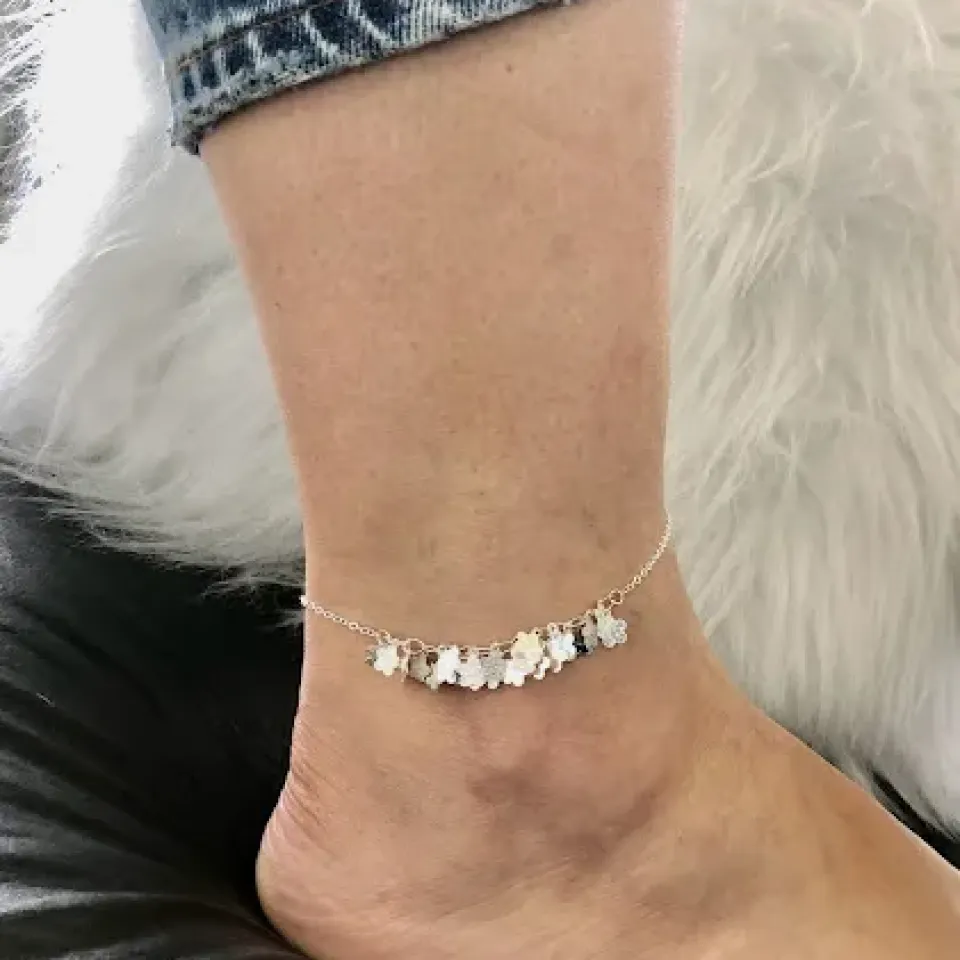 TORNOZELEIRA DOURADA COM MINI CORAÇÕES CHA...