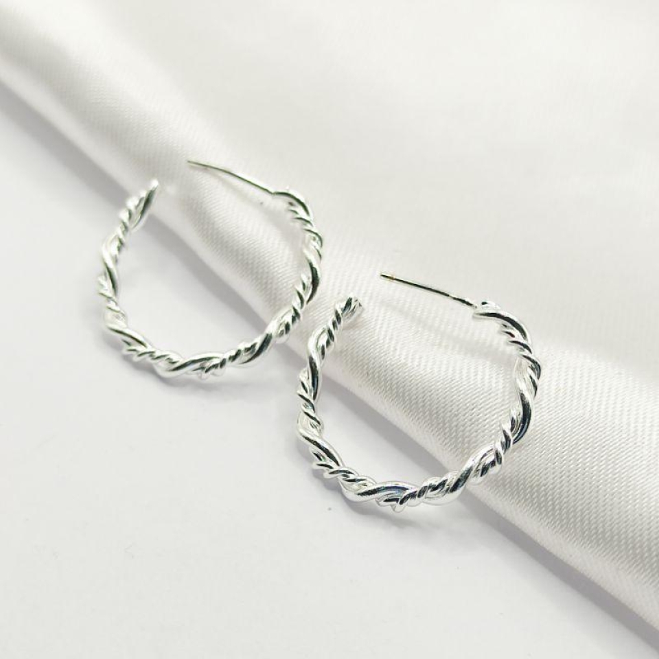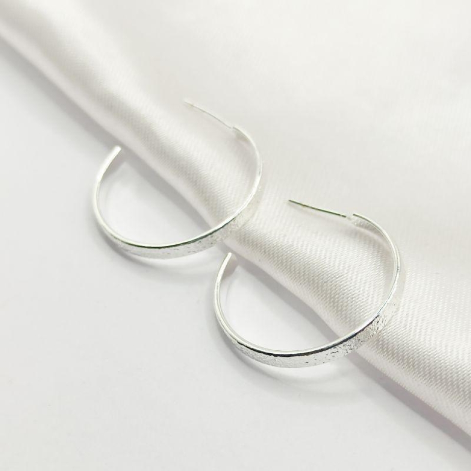 BRINCO PRATA MEIA ARGOLA FIO TEXTURIZADA...