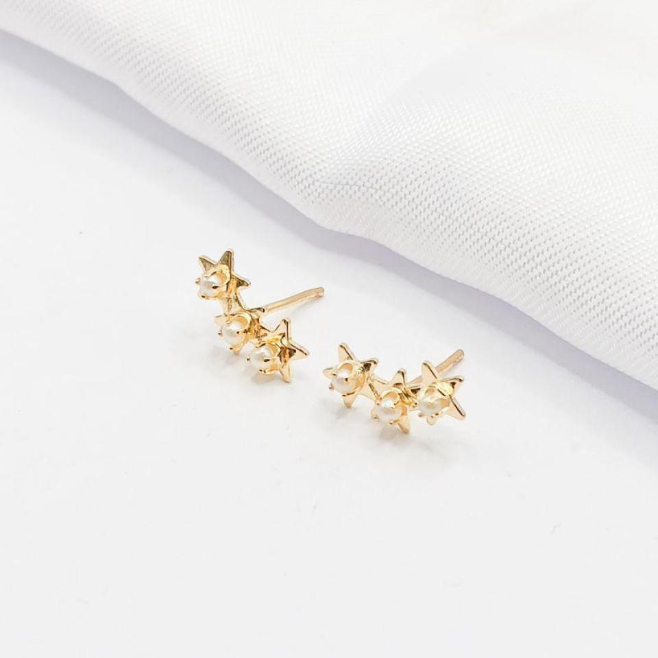 BRINCO DOURADO ESTRELAS COM MINI PÉROLA...