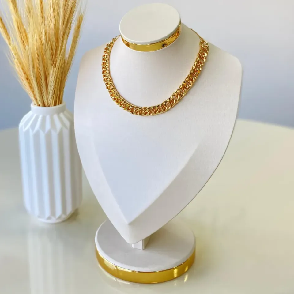 Gargantilha Dourada Choker Grume Fé Zircon...
