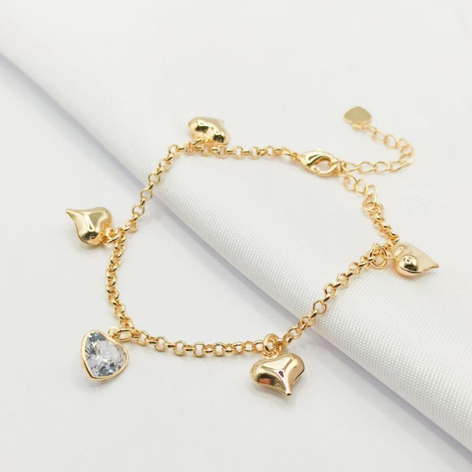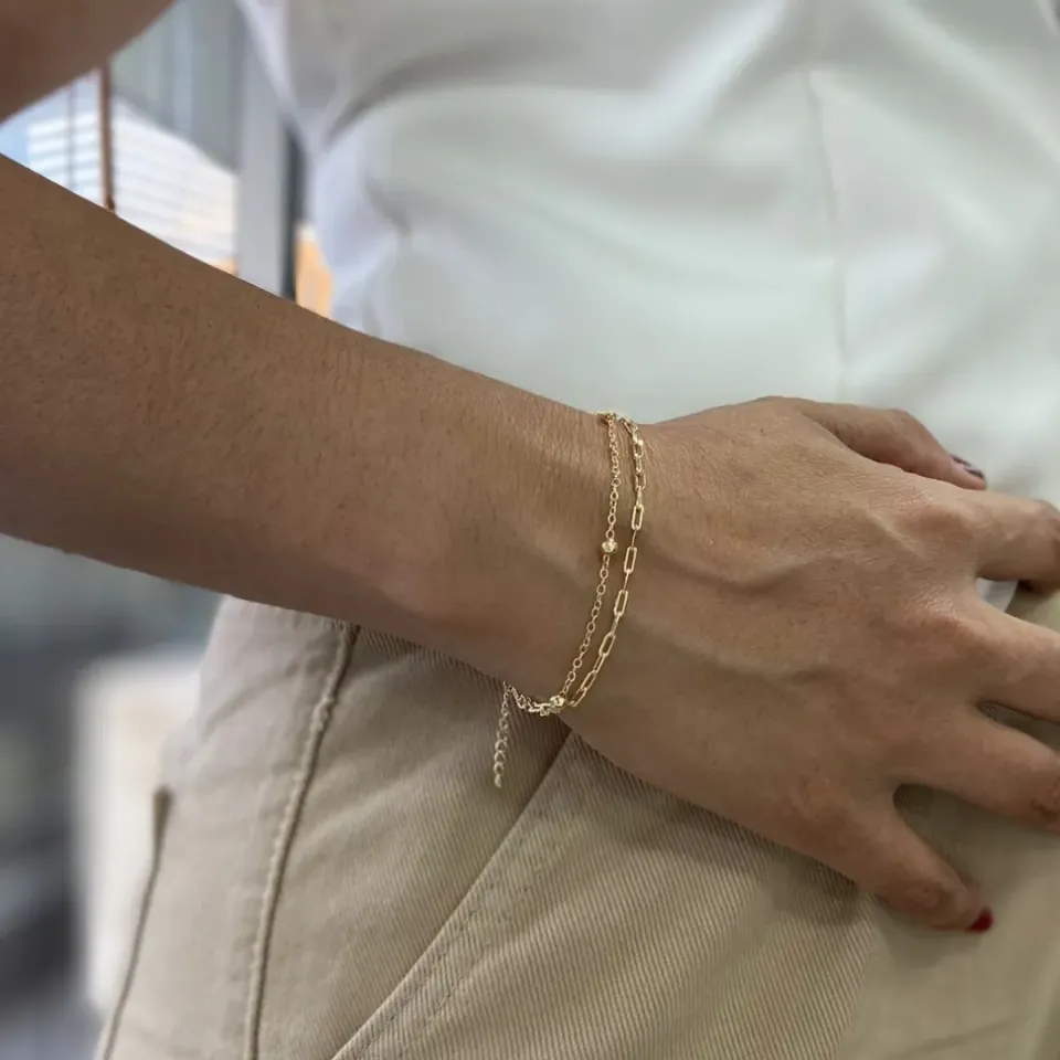 PULSEIRA DOURADA DUPLA BOLINHAS...