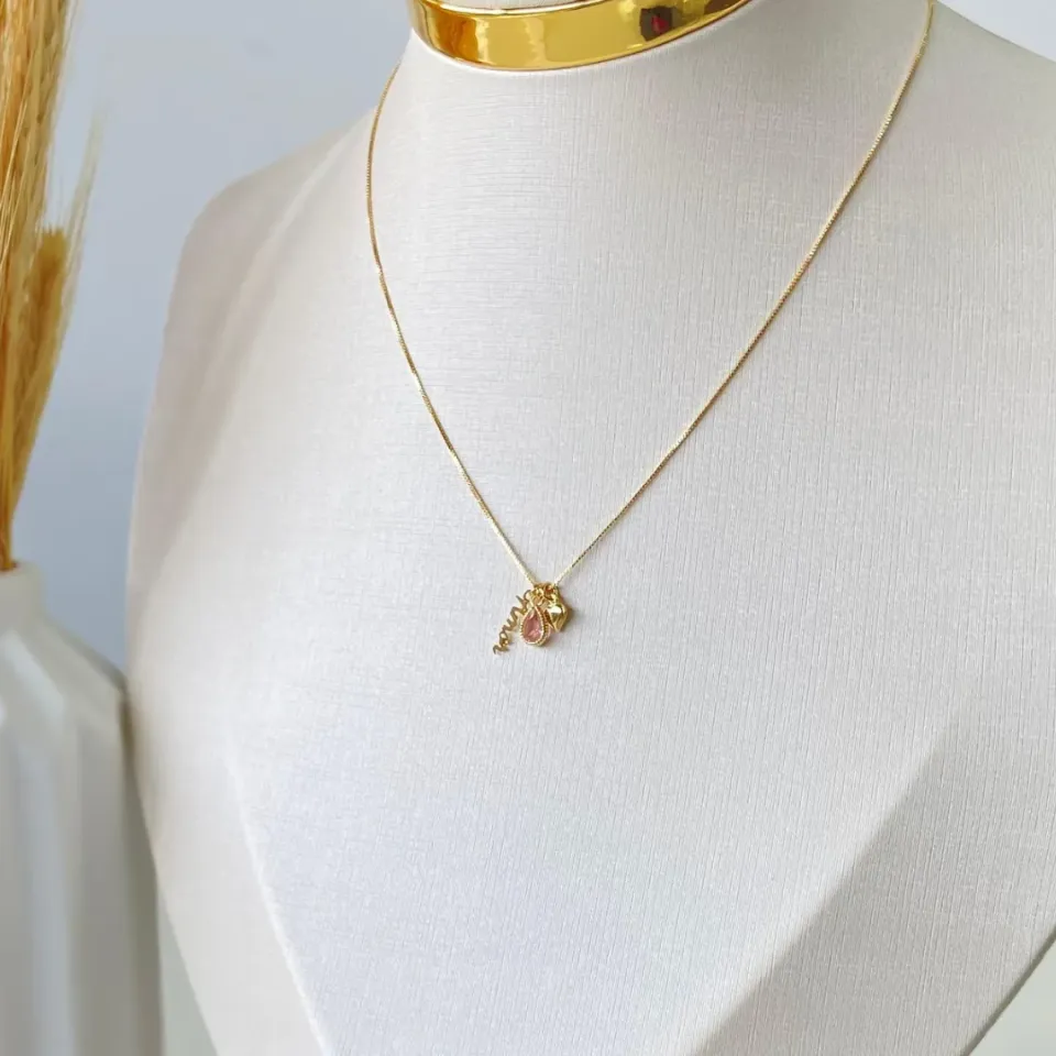 Gargantilha Dourado Gota Rosa Amor...