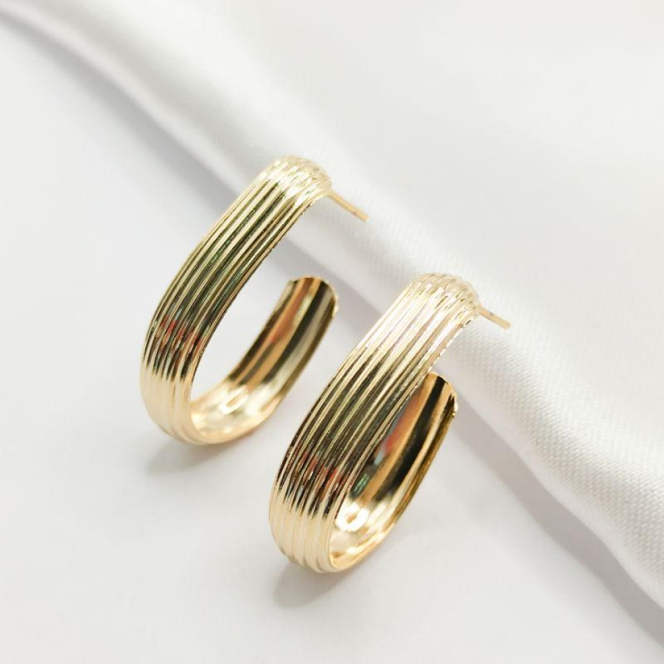 BRINCO DOURADO MEIA ARGOLA GEOMÉTRICA LISA...