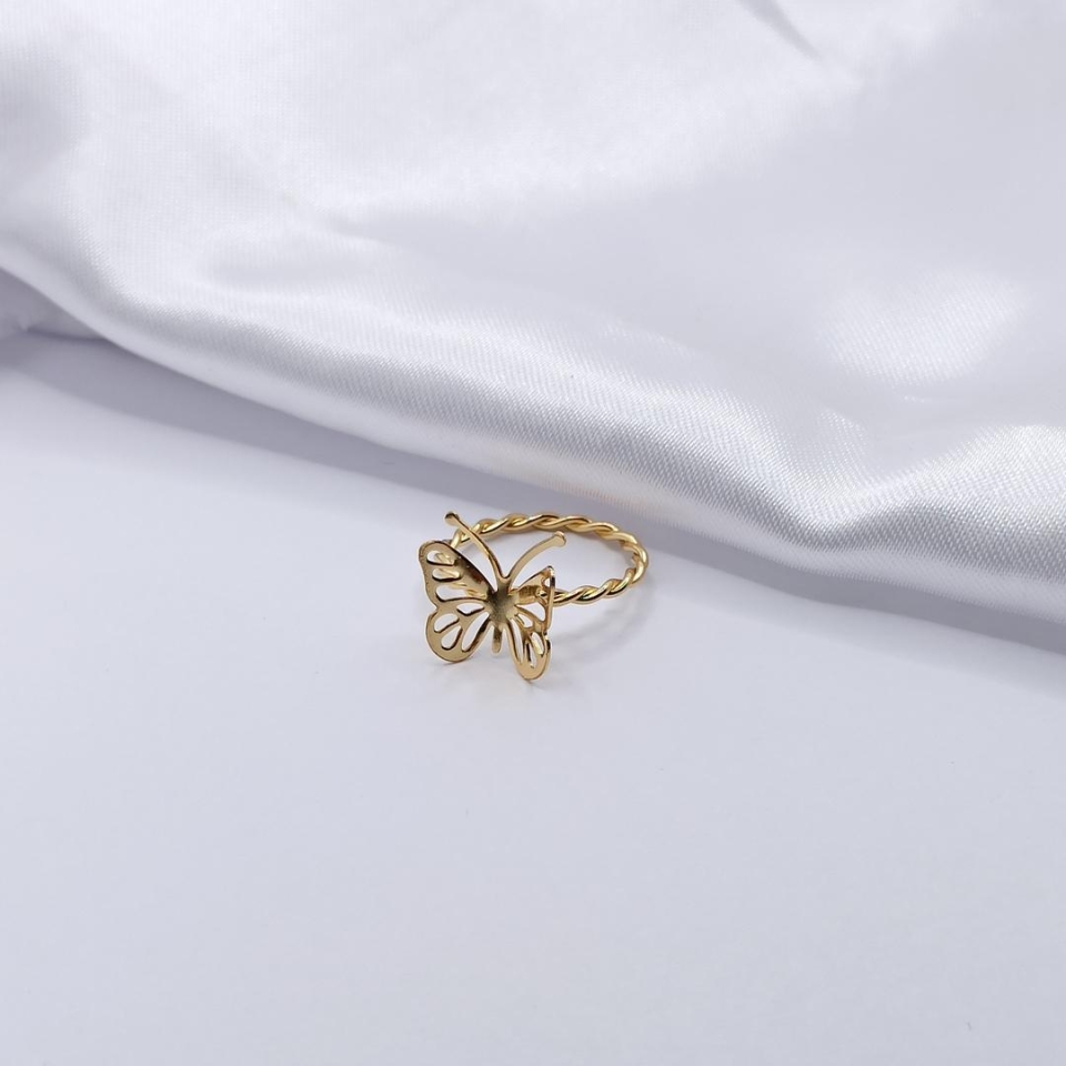 ANEL DOURADO ARO TORCIDO COM BORBOLETA TRA...