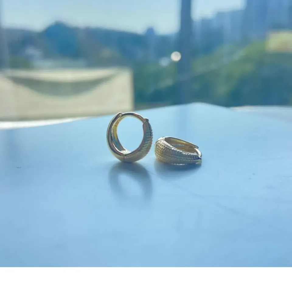 BRINCO DOURADO ARGOLINHA LISA E CRAVEJADA...