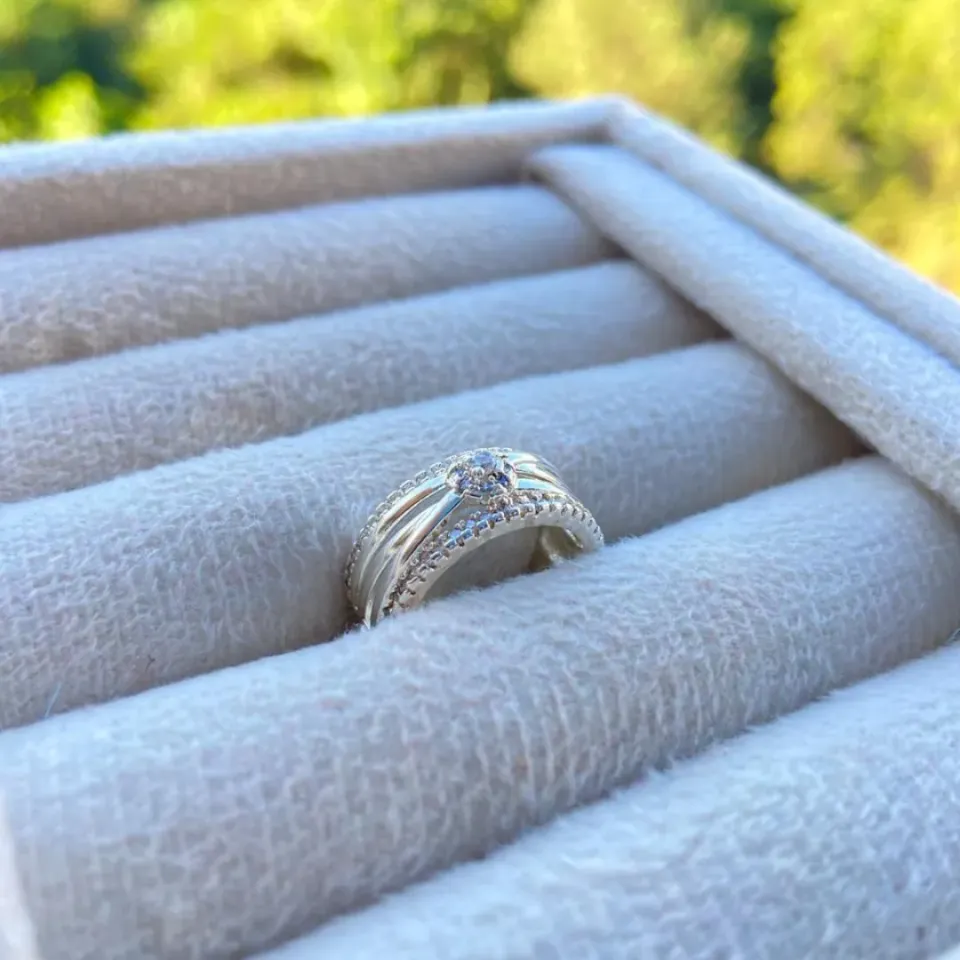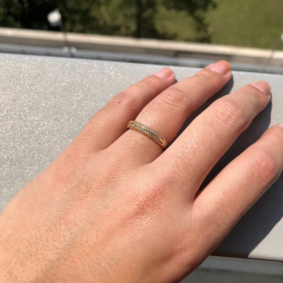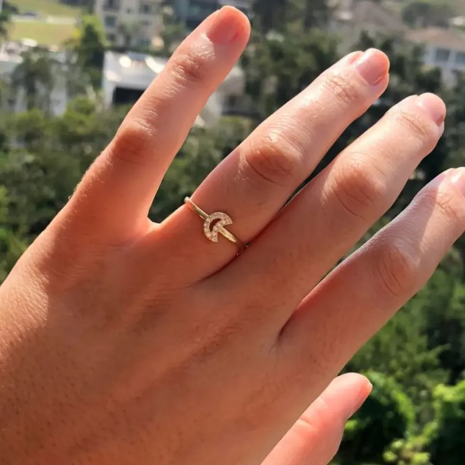 ANEL DOURADO DUPLO COM APARADOR E SOLITÁRI...